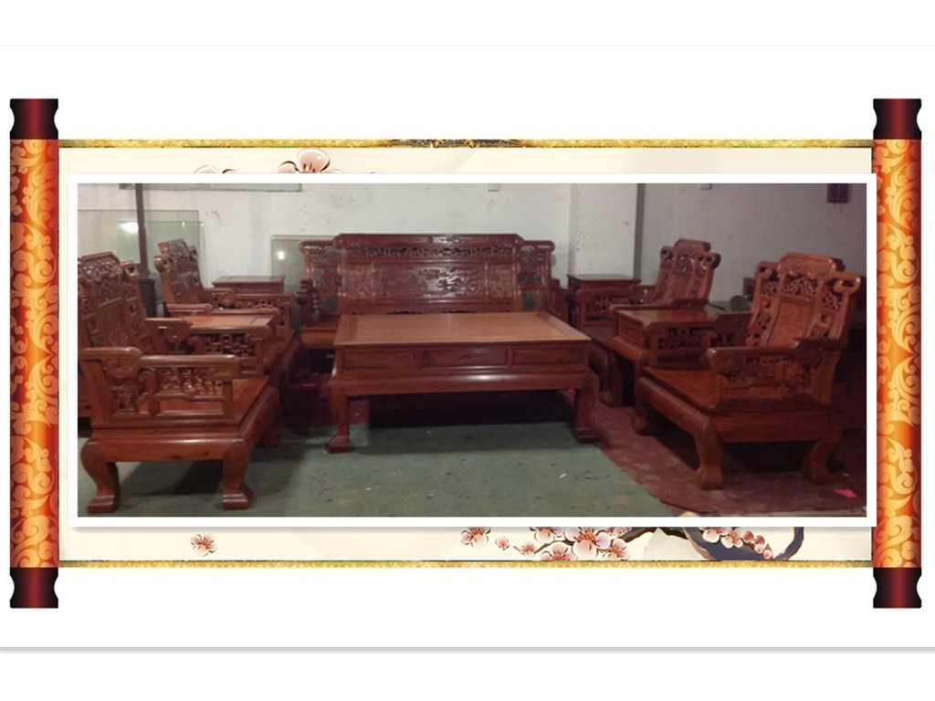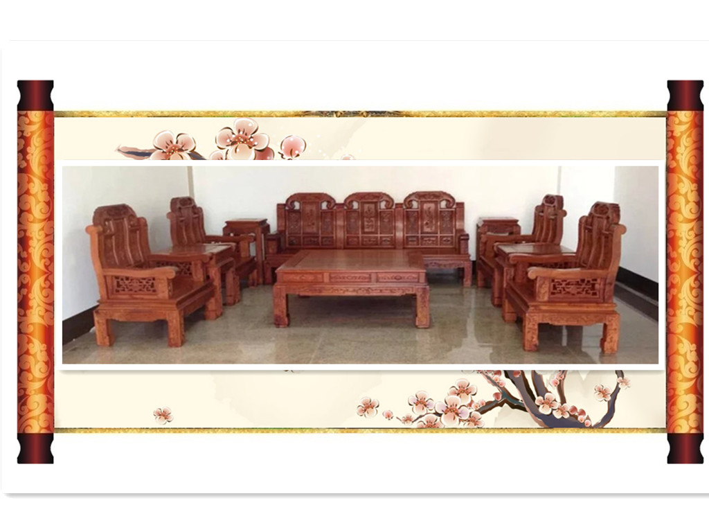 缅甸花梨万福沙发